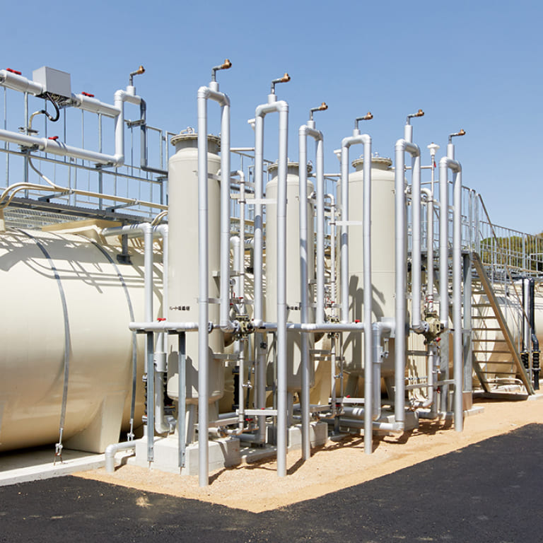 最終処分場においては、水処理施設を最も重要な設備と位置づけており、砂漠の国で使われる海水淡水化装置を活用して、飲料水レベル以上の高品質な水に処理した後に放流しています。